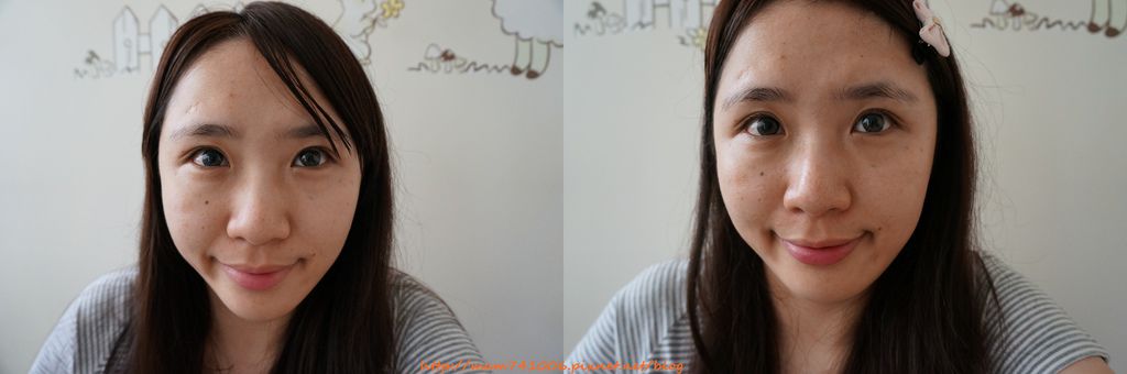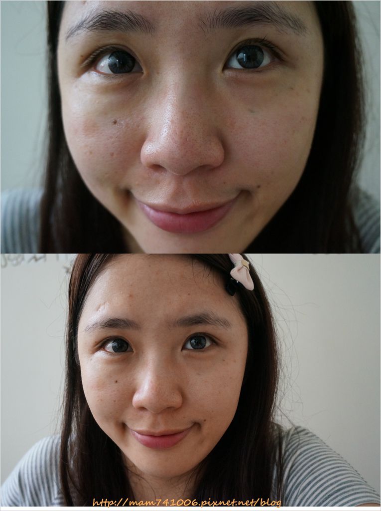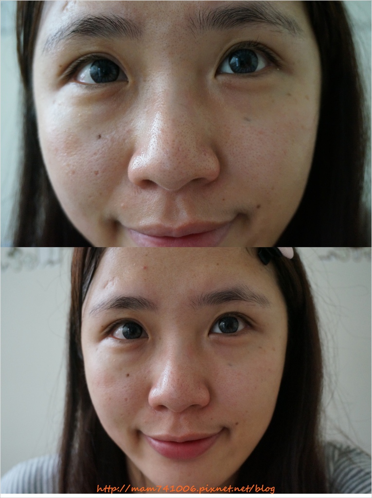 左圖是未洗臉前(剛起床的樣子),右圖是使用上面四樣保養後,可以看到肌膚亮度有提高