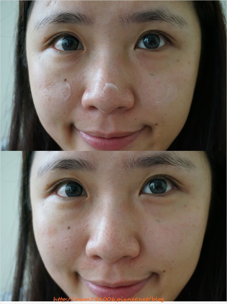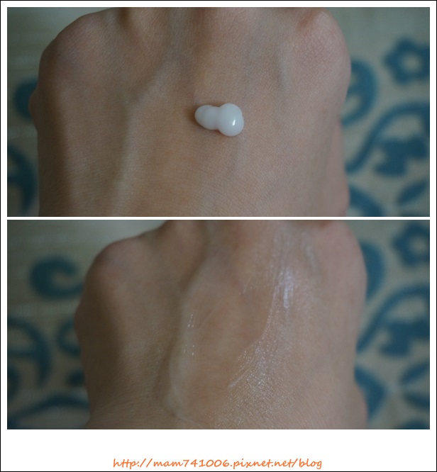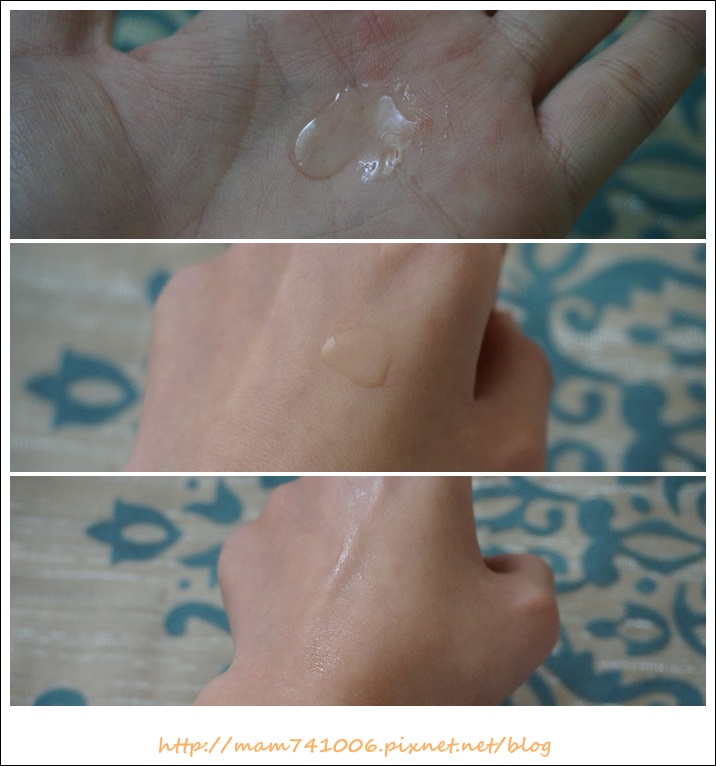 塗開時個人覺得有點滋潤,但待肌膚吸收後(均勻塗抹開後,沒有多久肌膚就會吸收)。用手觸摸臉上肌膚,竟然會有清爽的觸感(這點到讓我滿意外的)