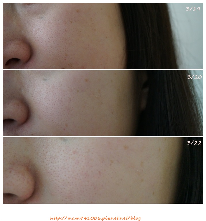 下面照片使用期間為3/19-3/22,直到現在仍有繼續使用喔(肌膚也都沒有出現過敏