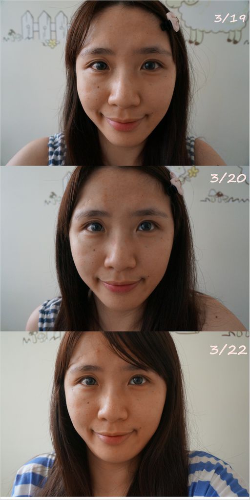 (3/22這張圖,額頭是有長一顆痘痘,這不是產品所導致的,是因為現在上班調到夜班,所以才會冒痘痘